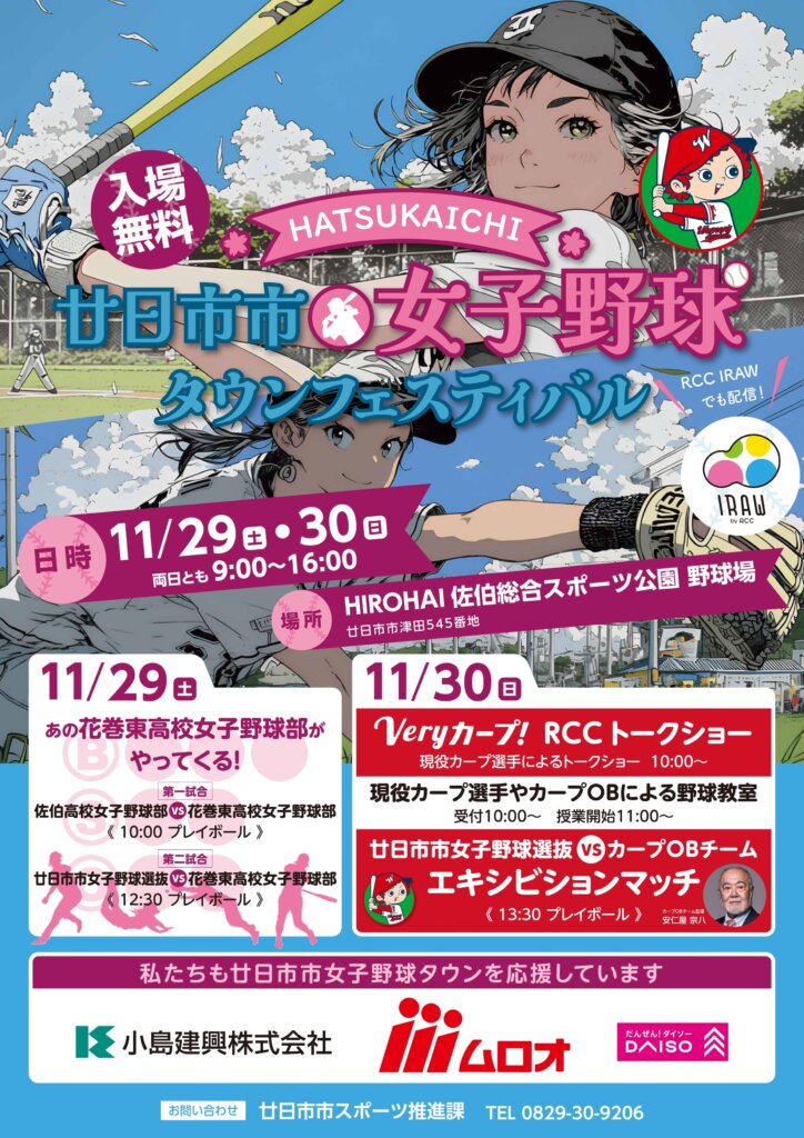 【入場無料】廿日市で「女子野球タウンフェス」開催|カープOB戦・高校女子対決・マルシェも