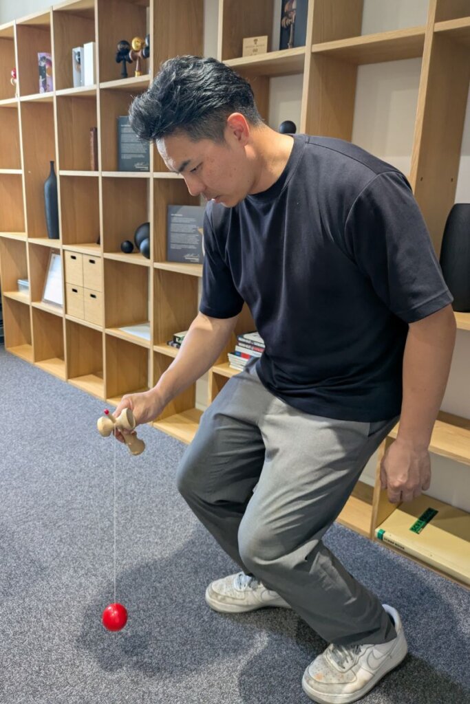 また2面・3面で、イワタ木工の岩田社長に教えてもらった「けん玉遊び」や「とめけん」のやり方をご紹介します。私も、けん玉はほとんどしたことがなかったのですが、教えてもらってからとめけんができるようになりました!ぜひ遊んでみてください。