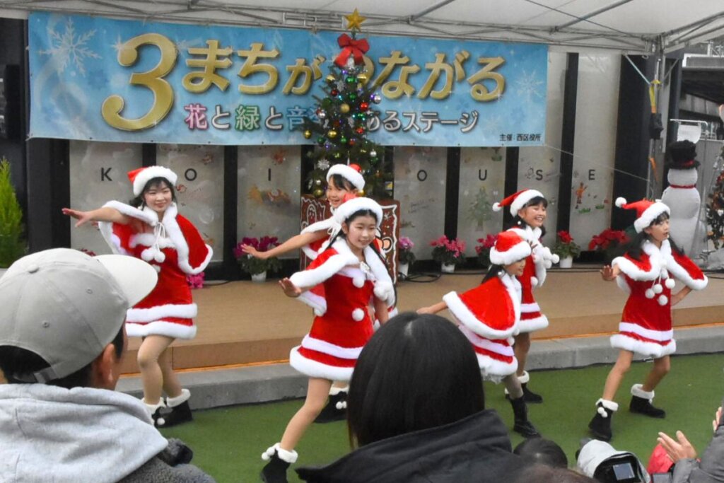 西区の3つの街(井口、己斐、横川)で連携して行うクリスマスイベント。地元グループによるステージや、クリスマスマーケットや飲食の出店もあります。花のプレゼントがある3か所をつなぐスタンプラリーも実施します。